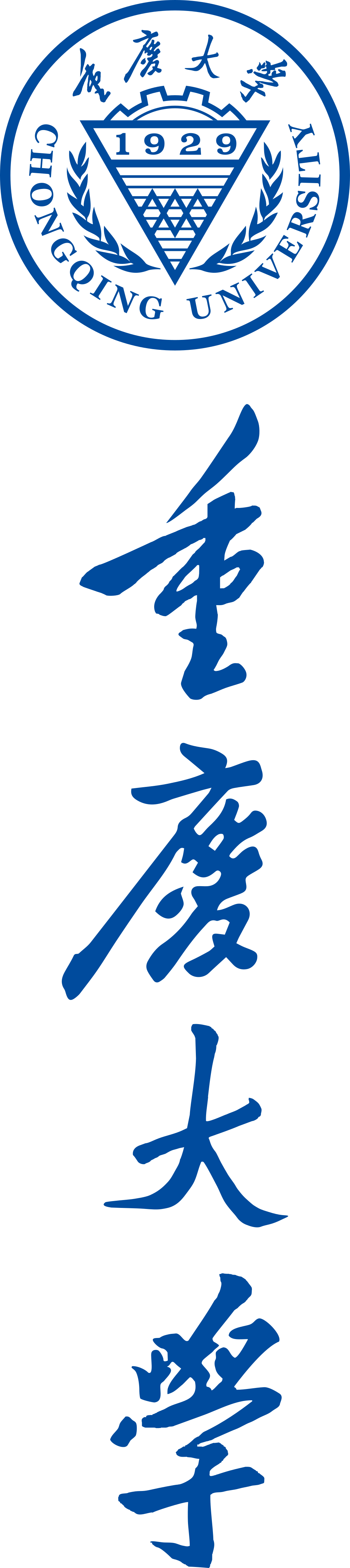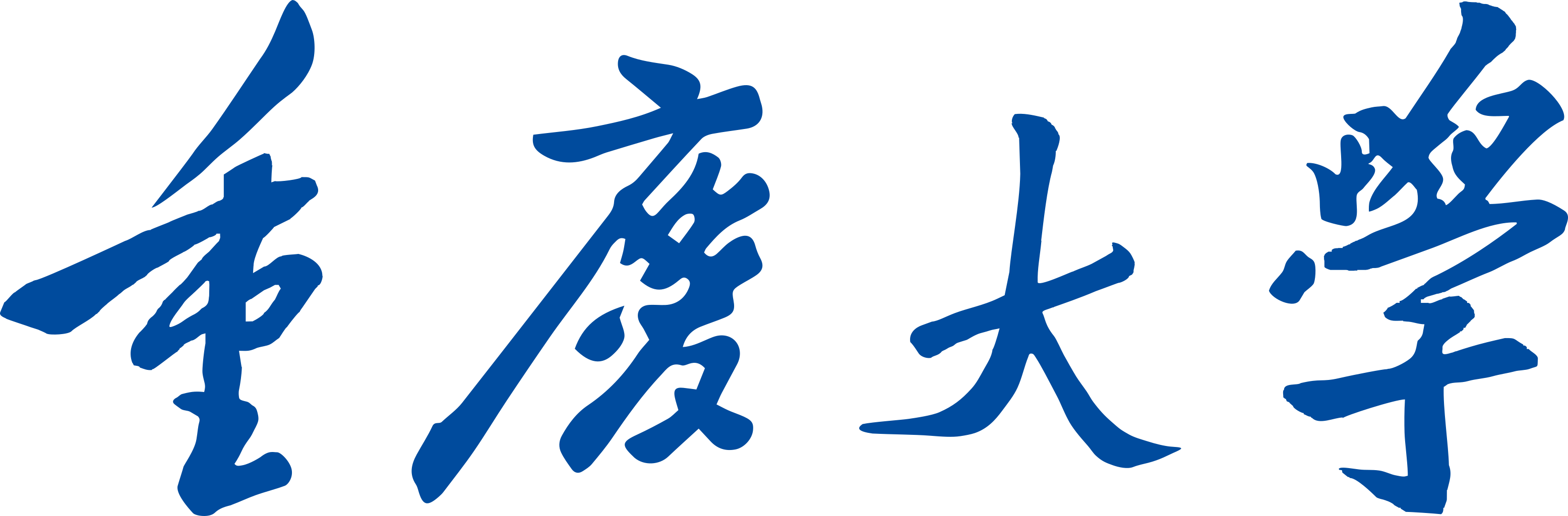 - 第七条 学校标准色包括主色、辅助色。主色为“重大蓝”(C:100 M:70 Y:0 K:5)。辅助色为专门制定的黄色(C:0 M:25 Y:100 K: 0)和绿色(C:25 M:0 Y:100 K: 0),黄色与主色为对比色关系,绿色与主色为邻近色关系。辅助色包括专色银、专色金、专色灰、专色红。